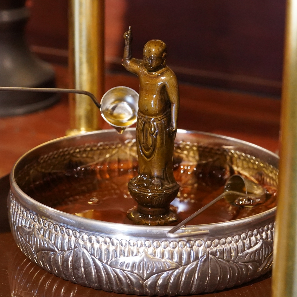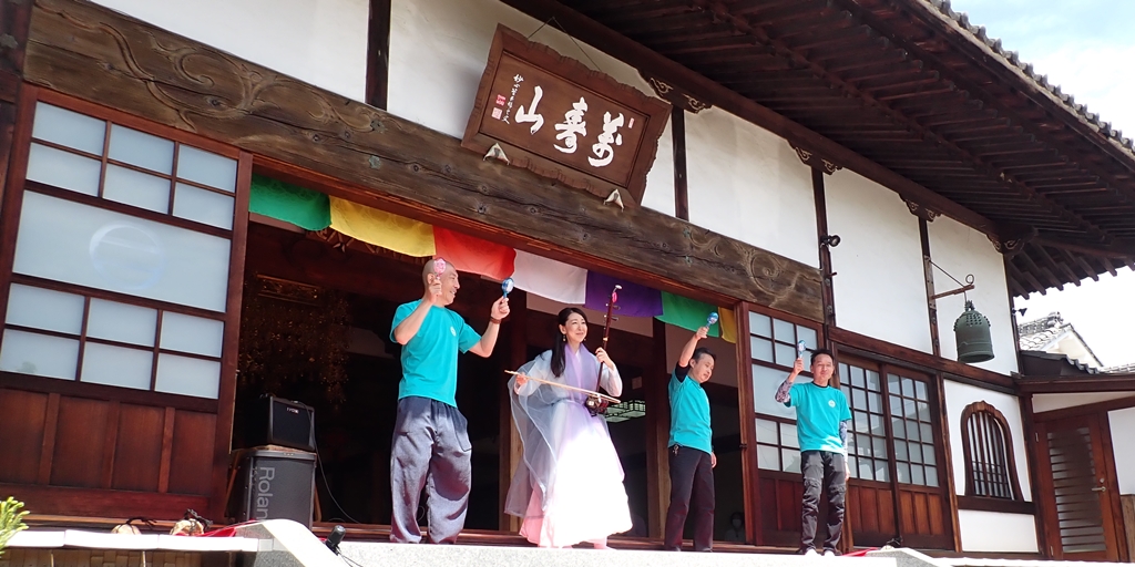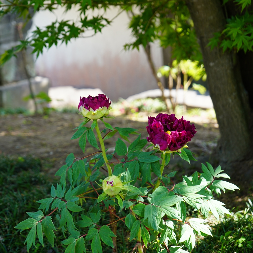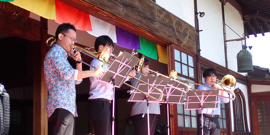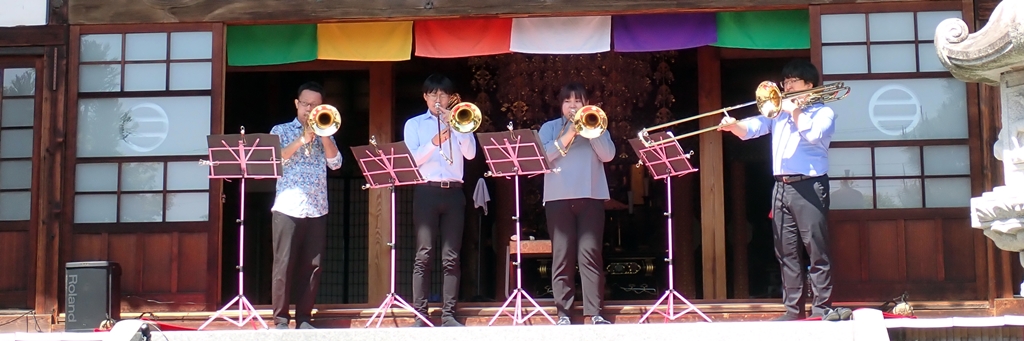 光明寺で4月22日、23日に恒例のぼたん祭りが行われました。22日は、お釈迦様のお誕生を祝う『降誕会』が行われ、23日には「二胡演奏」ならびに「トロンボーンの演奏」が行われました。『降誕会(ごうたんえ)』は、古より『花まつり』の名で親しまれてきたお祀りです。光明寺では、毎年、牡丹の花が満開になりますこの時期、降誕会の法要と共に様々な催しを行っています。