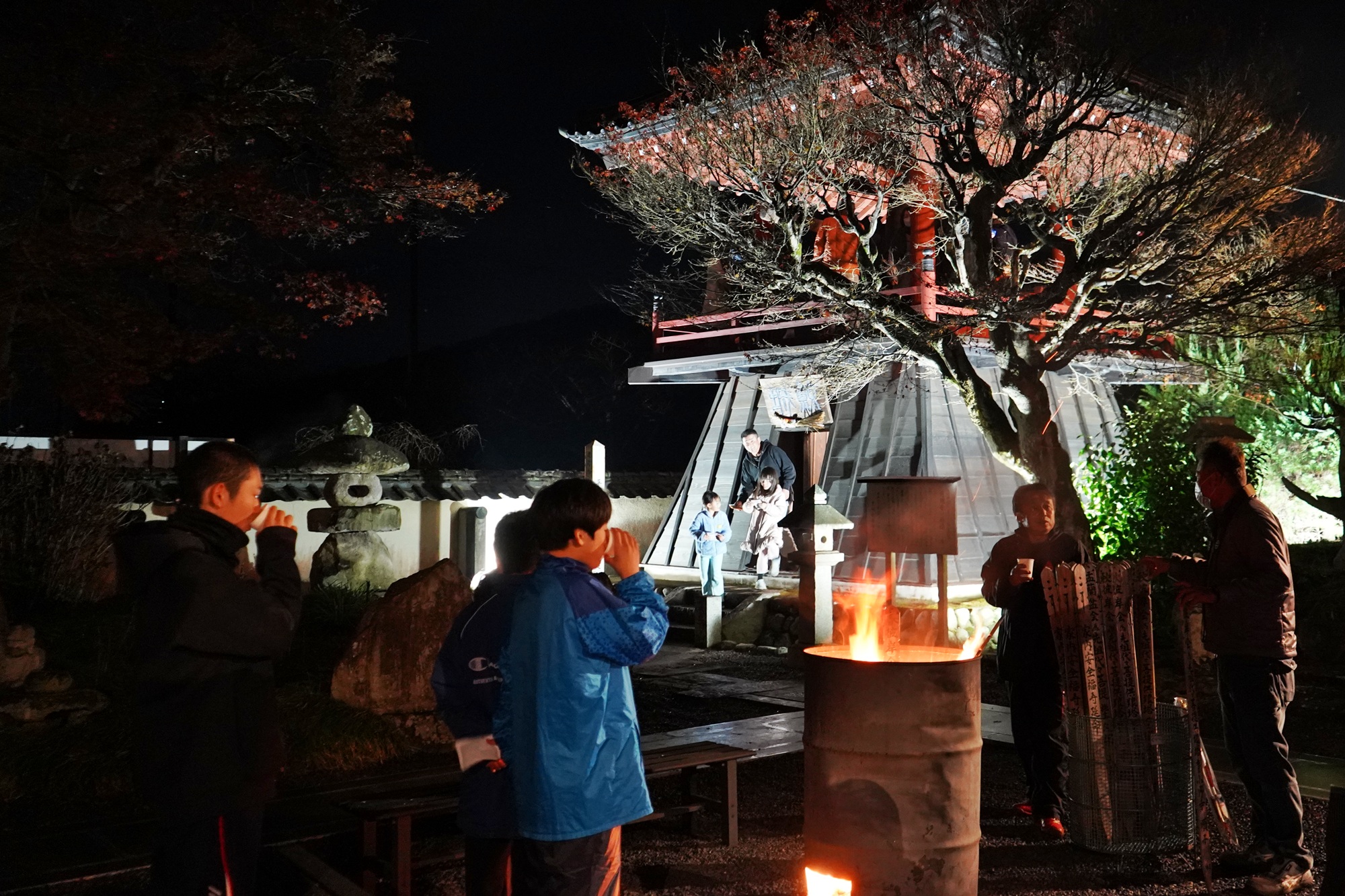 当日は、「お焚き上げ」する暖い灯りの中、お待ちいただく皆さんに甘酒を振舞わせていただきます。一年の区切りと新年への新しい門出を祝いながらご家族、友人と共に光明寺でひと時を過ごしてください。